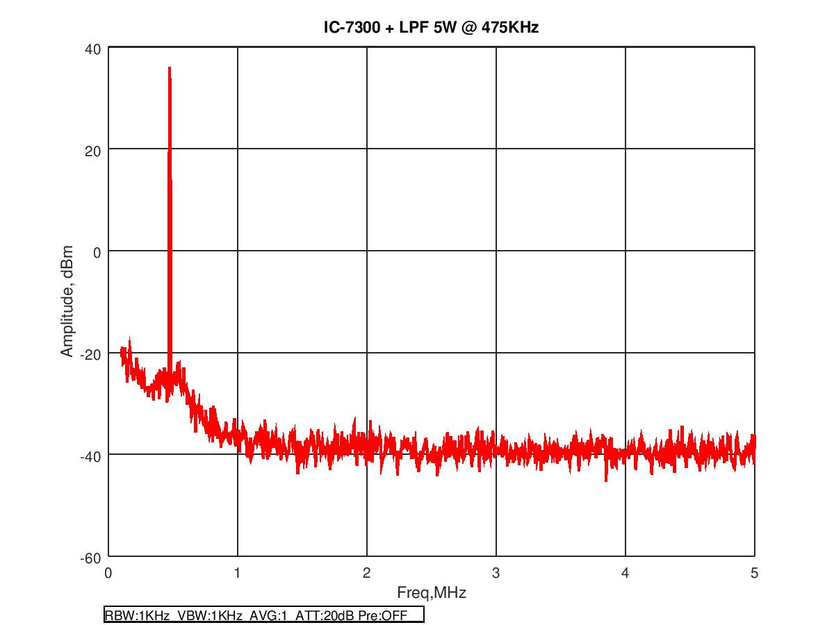 Once the filter is in circuit, we can see that all harmonic content from the IC-7300 is reduced to less than 70dB below the fundamental - more than enough to meet regulatory specs in this country.