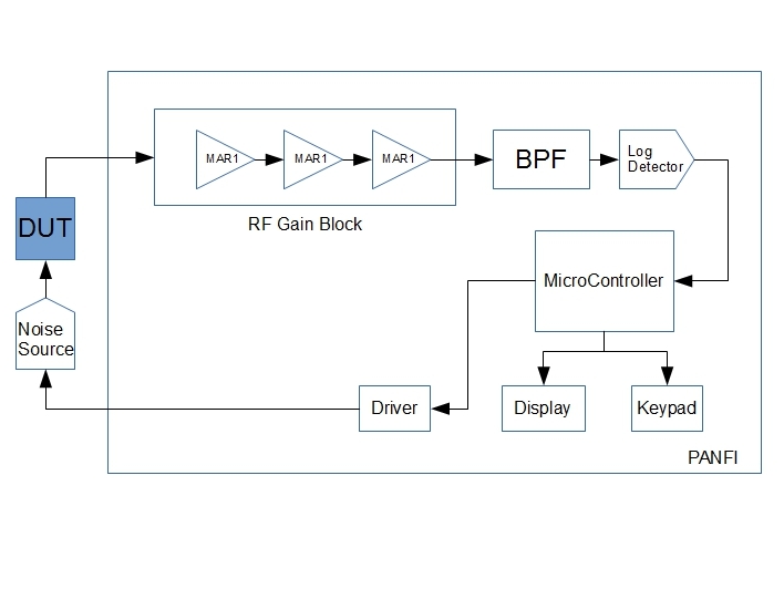 This PANFI design uses the "Y-factor" method of excess noise measurement. As it turns out, it's a ridiculously simple method, once you get your head around the idea. I will refer any interested reader to the HP Application notes, as I cannot hope to better explain the idea.
