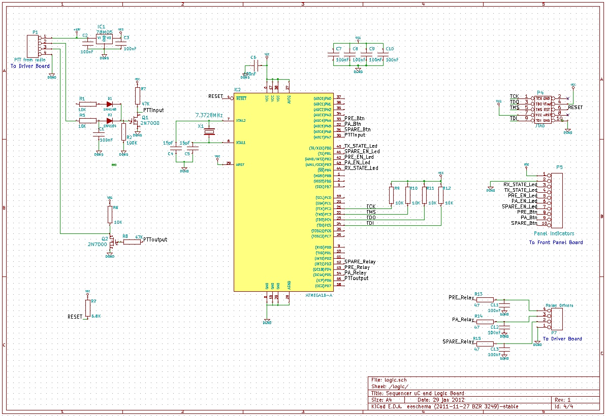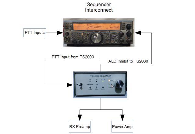 The sequencer hardware is kept quite simple. A "transmit request" signal input (or Press To Talk, PTT) from the radio is used to